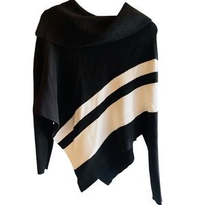 Black and white poncho sweater with zip neck by White House Black Market . EUC. Size XXS measures shoulder to hem 24”, armpit to armpit 29”