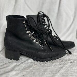 Buttery-soft but hardy leather lace-up boots with customized Vibram lug soles (with hearts!), designed to be worn on and off your bike. These retailed for $230 and I think were last made in 2020. The company folded all together in 2022.