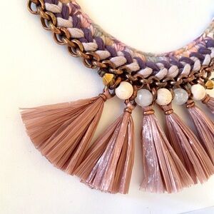 GUDBLING Boho Raffia Tassel & Crochet Statement Necklace