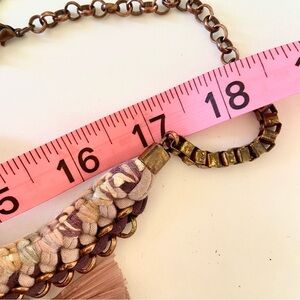 Handmade, unique crochet statement necklace made of multicolored cord and tassels. The chain can be worn very tightly as a choker or long.