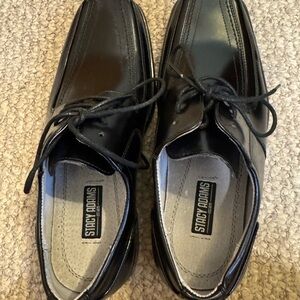 Stacy Adams Size 7M Solid Black Leather Square Toe Tie-Front Oxford Shoes - EUC