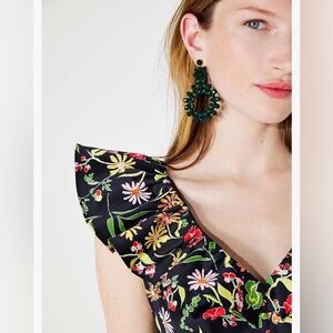 Kate Spade Women’s Rooftop Garden Floral Ruffle Top V-neck Poplin Fabric Size 8