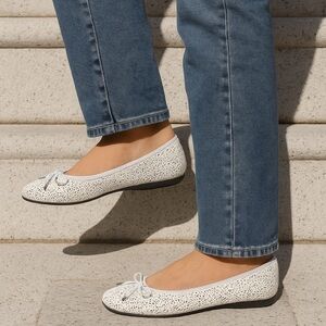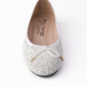 NEW Paul Mayer Attitudes Bingo flats in white. Etched napa leather and rubber soles. Excellent new condition. Size 8.5 Made in Spain