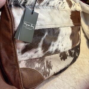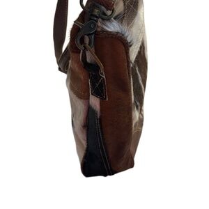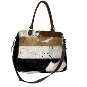 NEW Myra Bag Hyde Laptop Bag Hair-On Cowhide & Leather Brown White Tan Western
