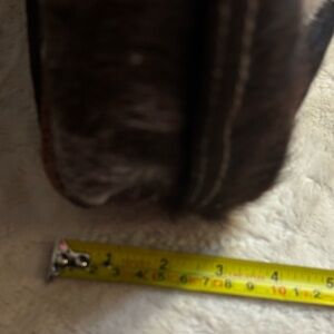 • Material: Genuine leather, upcycled canvas, and cowhide (hair-on).