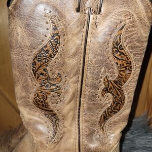 Abilene Leather Cowboy boots Tooled Inlay Womens Size 8