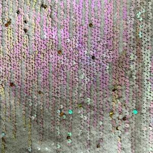 TCEC White and pink sequin halter high neck dress. Size small. Sequins are an iridescent white and pink but flip to gold. Perfect party dress for a bachelorette party or bridal event. Small makeup stain on the inside of the collar but not visible from the outside. Otherwise excellent condition.