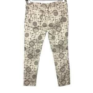 FREE PEOPLE Slim Ankle Crop Jeans Moroccan Mediallion Print Cream Brown 28 Boho