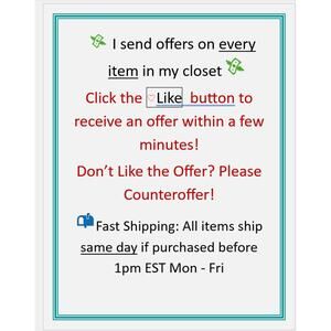 Reasonable offers always welcome, bundle with other items for additional savings. Same day shipping when purchased and paid by 1pm EST, Monday to Friday. Thank you for shopping!