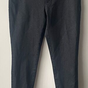 Elegant black pants with a modern fit. Ideal for versatile styling. These jeans are a charcoal black color. Please look closely at the pants.