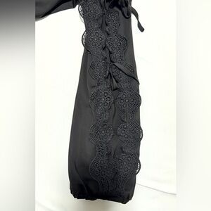 Stylish black top featuring elegant lace accents. Ideal for versatile wear.