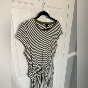 Talbots Tie Detail Knit Shift Dress in Olive Green Stripe | Size Large
