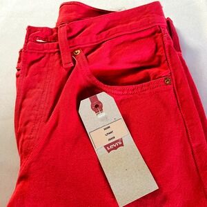 NWT Levis Premium 501 Jeans Women 26x28 Red High Rise Straight Made USA 90 Denim