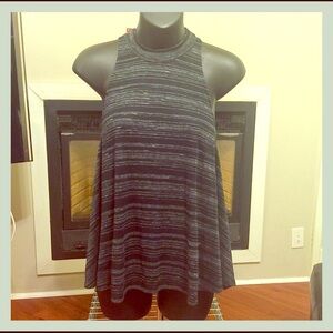 Adorable black, white, and gray sleeveless flowy top by Express. Only worn once so it's in great condition. 95% polyester and 5% other fiber.