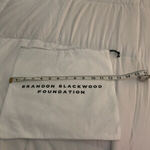Elegant white dust bag with bold black branding. Ideal for accessory storage.