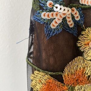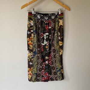NWT Anthropologie Byron Lars boho skirt. Size 2. Leaf on back is coming in attached. Stem is also coming in attached near waist. Loose thread as pictured.