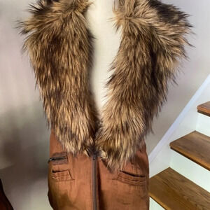 Anthropologie Hei Hei Brown Cargo Fur Collar Vest XS