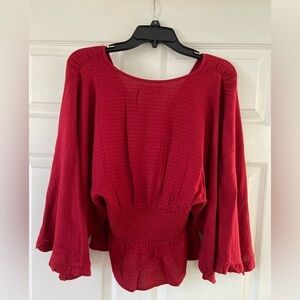 Band of the Free Womens Size M Red Flowy Sleeves Boho Smocked Waist Top Tassels