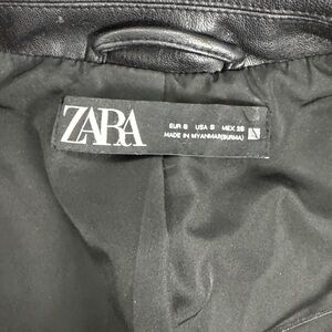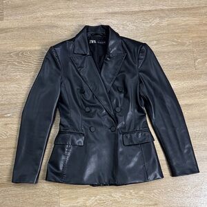 Zara Faux Leather Double Breasted Black Blazer Jacket sz Small