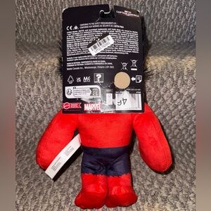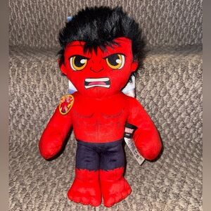 The Marvel Plush Talkers 11.75" Red Hulk Captain America Brave New World plush doll is a small, red plush toy featuring the popular character Red Hulk from the Marvel universe. Made by Hasbro, this talking plush doll is perfect for any occasion and is sure to delight fans of the Marvel franchise. With its cute and cuddly design, this plush doll is a must-have for any Marvel collector or fan of these iconic characters. This toy is not only soft but also talks when you squeeze his stomach!