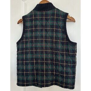 Chaus Sport Womens Vest Large Zip Tartan Plaid Quilted Academia Preppy Vintage Green Blue