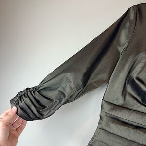 Vintage Tadashi Brown Green Taffeta Elegant Long Sleeve Jeweled Top Size 12