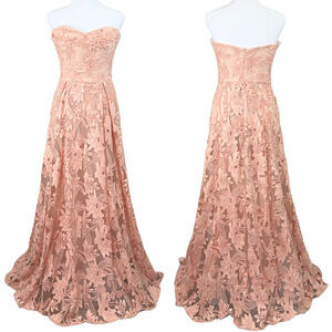 Marchesa Notte Dress Blush Pink Maxi Gown Applique Floral Lace Sequin Sz4