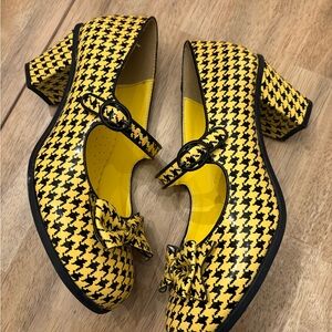 Elevate your look with these stylish yellow houndstooth heels. Perfect for making a bold statement.