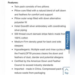 Hotel Grand Feather & Down Pillow, 2-pack (not in packaging but new pillows)