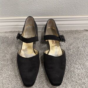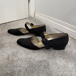 Elegant black flats with a sleek buckle design. Perfect for versatile styling.