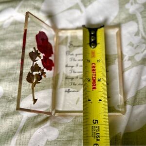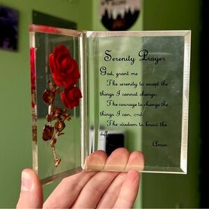 VTG Serenity Prayer Glass Encased Faux Floral Rose Cottagecore Glassware Art