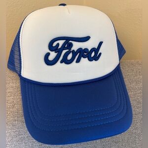 FORD Blue and White Snapback Trucker Hat, Embroidered Padded Front Panel