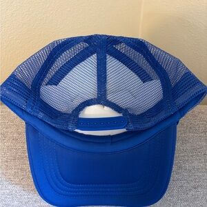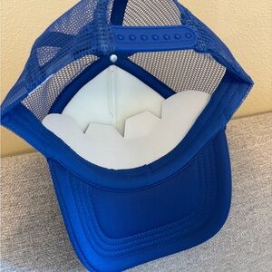 Blue and white trucker hat