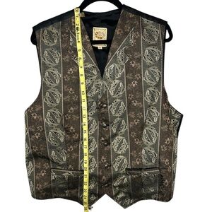 Elevate your style with this classic brown vest, featuring a paisley pattern. Perfect for formal events or a refined casual look.