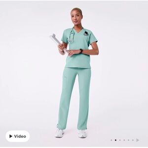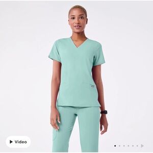 FIGS Casma Three Pocket Scrub Top in Aqua Blue Size XS
