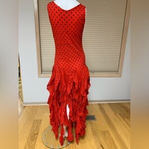 Red with black polka dots tiered ruffles flamenco, salsa, tango dance party dress. Made in Argentina. Size M. Like New