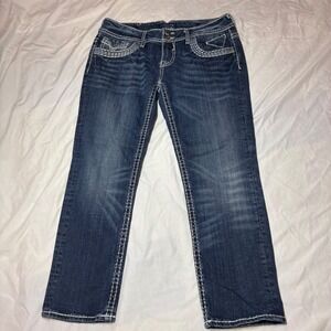 VIGOSS The Dublin Capri Womens Jeans Size 31x23 Dark Wash Embellished Pockets