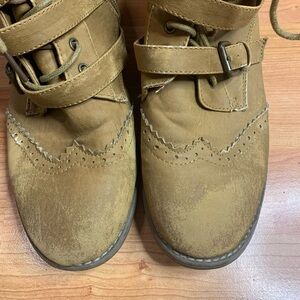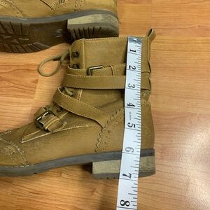 Tan Wingtip Brogue Buckle Combat Boots | Side Zip | Size 39 (US 8/8.5)