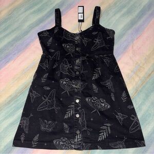 NWT Disturbia Callopistria Moth Print Denim Mini Apron Dress size 10