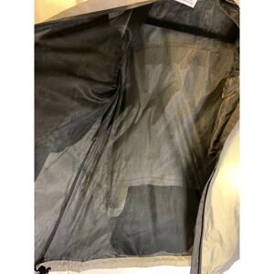Mesh lining. Adjustable hook and loop cuffs.