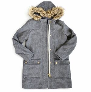 J.Crew Parka Jacket Women's Gray Wool Blend Faux Fur Trim Hooded Full Zip sz 4