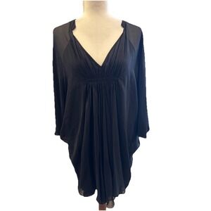 DVF Diane von Furstenberg Babydoll Fleurette Silk Chiffon Mini Dress Black 8