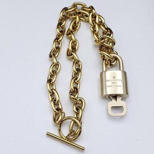 The authentic LV lock and key may be used for locking, as a pendant, or for decorative styling.