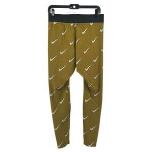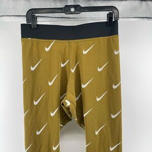 Nike Leg-A-See leggings, olive green Nike leggings, metallic silver leggings, women’s Nike activewear, large Nike leggings, athleisure leggings, cotton blend leggings, streetwear, women’s leggings, green leggings, Nike leggings