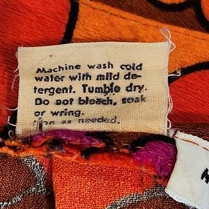 I believe this fabric is called barkcloth, marked ACRYLIC. It also includes natural cotton lining at bust (see photos, it has some yellowing from age on it).