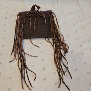 Stylish women's bag featuring a unique brown and purple design with fringe details. Perfect for adding a touch of flair to any outfit.