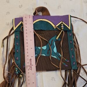 Native American Turquoise and Purple Fringed Horse Equestrian Women's Bag