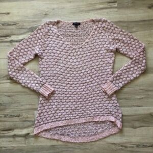 Elegant blush V-neck sweater with textured design. Ideal for layering.