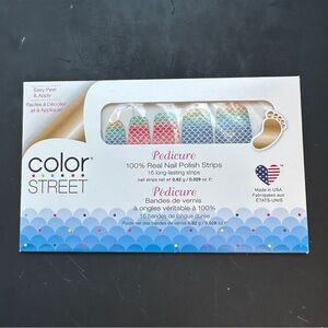 Color Street Any Fin Goes - Pedicure. Color Street Nail Polish Strips are 100% Polish and 90% dry upon application. Each set comes with 16 strips. Pretty rainbow mermaid scales.