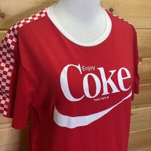 Coca-Cola Enjoy Coke Red Unisex Checkered Sleeves T-Shirt Small